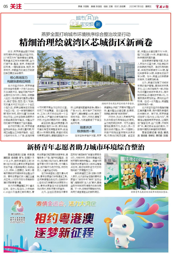 近日,燕罗街道全面打响城市环境秩序综合整治攻坚行动,以“绣花功夫”推进精细化管理,聚焦重点区域与关键问题,全力打造干净、整洁、有序、绿美的街区环境,一幅路面洁净、规范、秩序井然、绿意盎然的湾区芯城街区新图景正徐徐展开。